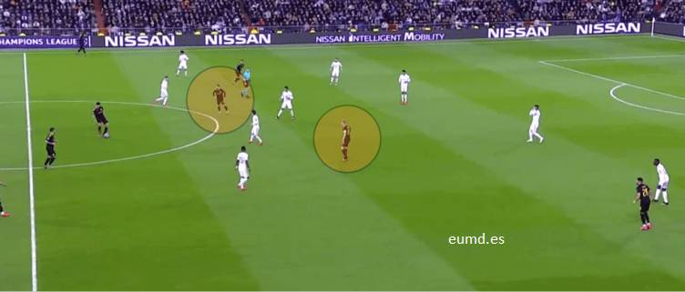 En este caso, no se trata de una cuestión de efectividad, sino más bien de volumen. Al conjunto blanco le cuesta mucho castigar a las defensas rivales, traducir las fases de dominio en ocasiones. Por una parte su circulación es de mucha calidad, pero algo lenta, lo cual dificulta desordenar al rival mediante el pase, si bien es cierto que sigue siendo la principal forma que encuentran los blancos de atacar. Por otra parte, encuentra dificultades para desbordar a los rivales. Sólo Hazard (lesionado la mayor parte de la temporada) están constituyendo un factor diferencial a la hora de desordenar a partir del regate. Jugadores como Isco, Marcelo o Modric, fuente de desequilibrio interior y exterior han dejado de hacerlo como antaño. Si bien la inclusión de Mendy y Fede Valverde a supuesto una mejora en la estructura del equipo y hoy por hoy son imprescindibles, no es menos cierto que su fútbol no está orientado a desequilibrar al rival. Fede Valverde ha sido una amenaza en aquellos partidos en los que es capaz de atacar el intervalo lateral-central izquierdo de los rivales, pero su juego no siempre está enfocado a ellos. De esta forma los rivales suelen defender de cara constantemente, facilitando su labor.