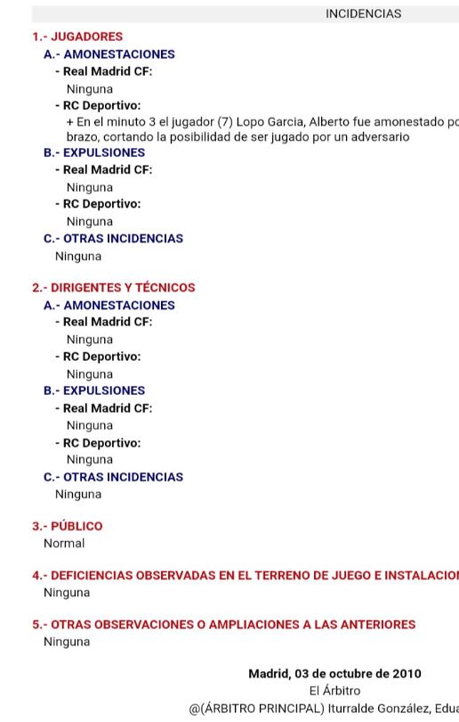 —Es el acta del partido al que hacía usted referencia, el mismo en el que, supuestamente y siempre según sus palabras, Florentino Lucabrasi Pérez lo arrinconó a empujones y le pidió… no nos ha dicho lo que supuestamente le pidió. ¿Nos lo puede aclarar?