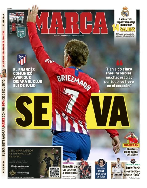 Hola a todos. Antoine Griezmann se va del Atlético de Madrid. Lo anunció este martes justo antes de irse a cenar a la mesa de vaya usted a saber quién. El año pasado aguantó, pero a la segunda va la vencida. El francés quiso despedirse de forma emotiva y mostrando sentimiento colchonero, aunque el mensaje quedó bastante tibio. Resultó mucho mejor el de hace meses, con Piqué tejiendo desde la sombra. Sea como fuere, Griezmann sigue los pasos de Diego Godín, Lucas Hernández, Juanfran Torres y ya veremos si alguno más. Pesos pesados del vestuario que dicen adiós tras una etapa, la del 'Cholismo', que parece desvanecerse con más ruido que títulos.