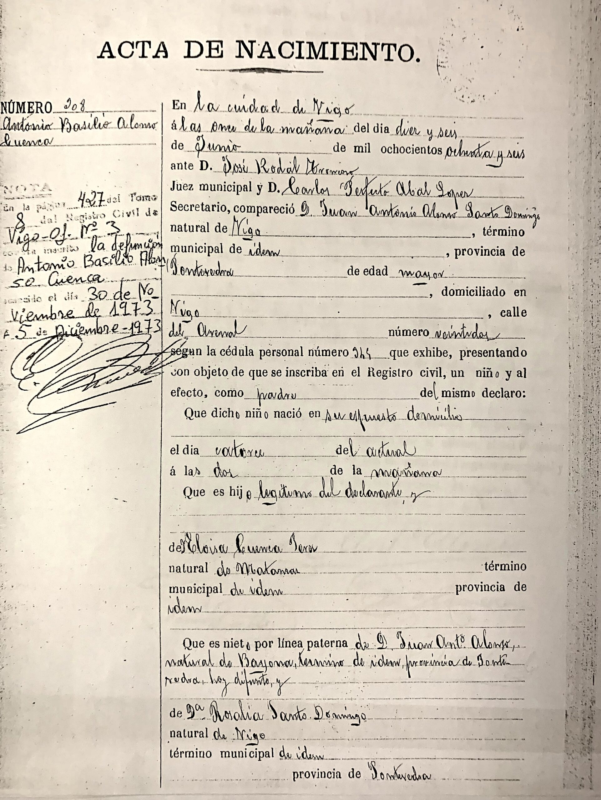 Falleció a los 87 años en Vigo, el 30 de noviembre de 1973.