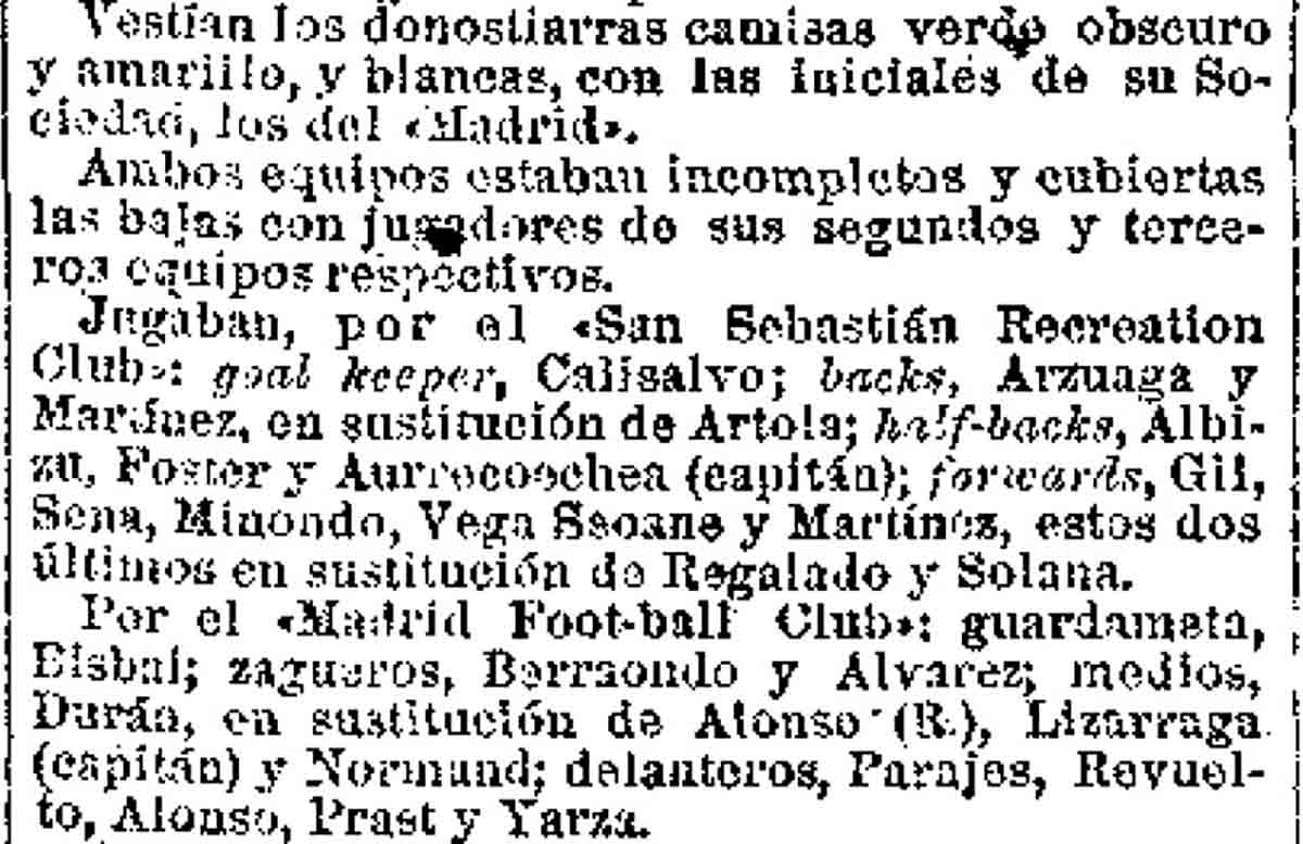 El torneo lo iban a disputar los tres equipos inscritos jugando todos entre sí. Los conjuntos eran el Madrid CF, el San Sebastián y el Athletic Club. Se esperaba al campeón catalán, pero su competición regional no había terminado y no pudo enviar a ningún participante. En el campo del Tiro del Pichón se enfrentaron madrileños y donostiarras en la primera jornada el día 16 de abril. Antonio Alonso entró en la historia del club madridista con una actuación magnífica anotando dos tantos y siendo fundamental en la victoria. Los blancos vencieron por 3-0 con el otro gol marcado por Manolo Prast. En la crónica de Arte y sport contaron así los tantos del vigués. El primero: “Antes de terminar la primera parte, logra, después de reñido pelote, otro tanto el Madrid, debido a un buen centro de Revuelto, rematado con gran prontitud por Alonso”. El segundo: “En esta segunda parte llegó a querer dominar con bastante insistencia el Madrid, avanzando hasta cerca de medio campo los zagueros; ocasión que aprovechan rápidamente los madrileños para llegar si grandes obstáculos al goal contrario y apuntarse un tanto marcado por Alonso”. En la previa de este encuentro, Heraldo de Madrid informó que su hermano Rodrigo iba a jugar también en la media, pero algo debió ocurrir porque finalmente fue sustituido por Leopoldo García Durán.