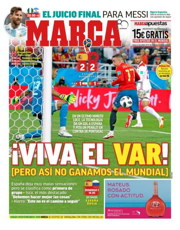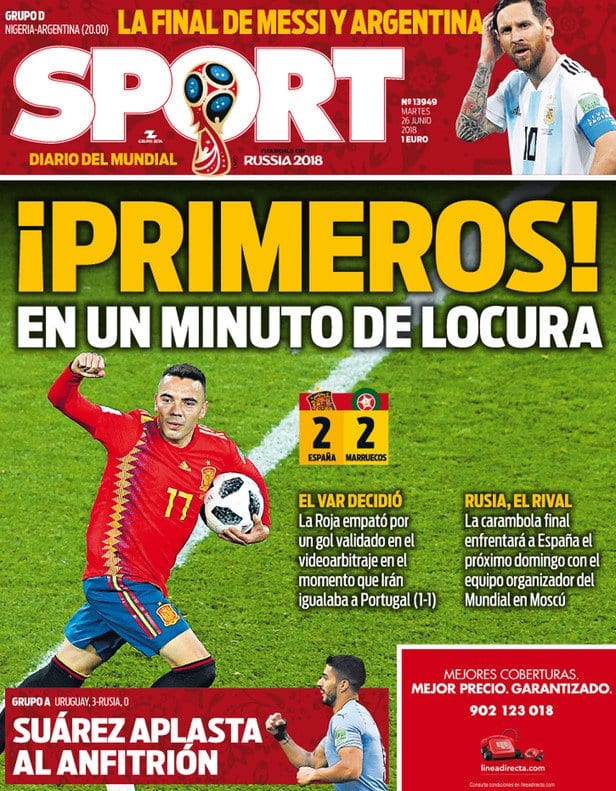 Hoy, la prensa empieza a soltar las primeras críticas. El más señalado es David De Gea, quien, siendo sinceros, poco pudo hacer ayer en los goles de Marruecos. Le tienen ganas al portero del Manchester United y van a por él hasta cuando no toca. Carvajal, Sergio Ramos, David Silva y Andrés Iniesta también aparecen en la diana. Incluso Fernando Hierro, cuya dirección de campo y la ausencia de toma de decisiones empiezan a pesar sobre su figura.
