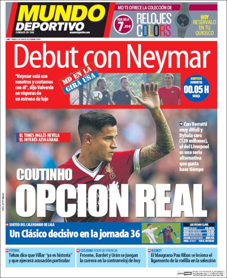 Mayores motivos oculta la prensa deportiva catalana para escurrir el bulto con desfachatez y alevosía. Y en este sentido están de suerte. Bartomeu fue a París a comprar a Verrati. Volvió sin Verrati y le birlaron a Neymar. Ejemplo de gestió y bombazo deportivo con la suficiente importancia para enmascarar que el FC Barcelona fue eje vital en la consolidación y perpetuación del poder omnímodo de Villar y su casta en la Federación Española de Fútbol.