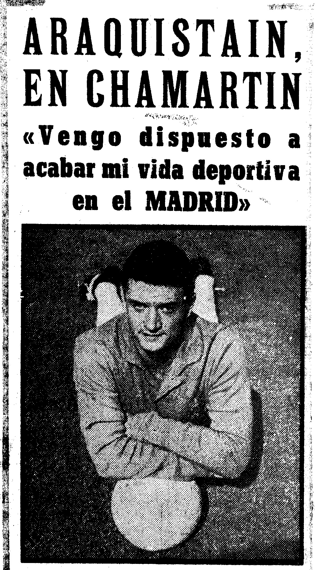 No estaba muy preocupado por el cambio de aires: “Creo que me aclimataré pronto a mi nuevo club. Voy sin locas pretensiones, porque sé muy bien lo que valen los que van a ser mis compañeros desde septiembre. Pero con la misma esperanza y afán de ganarme el puesto, y si el entrenador me hace la confianza de designarme titular, procuraré hacerme digno de ella”. Unos días más tarde ya instalado en la capital volvió a hablar para el periódico deportivo que tituló su entrevista con el gran deseo del cancerbero vasco: “Vengo dispuesto a acabar mi vida deportiva en el Madrid”.