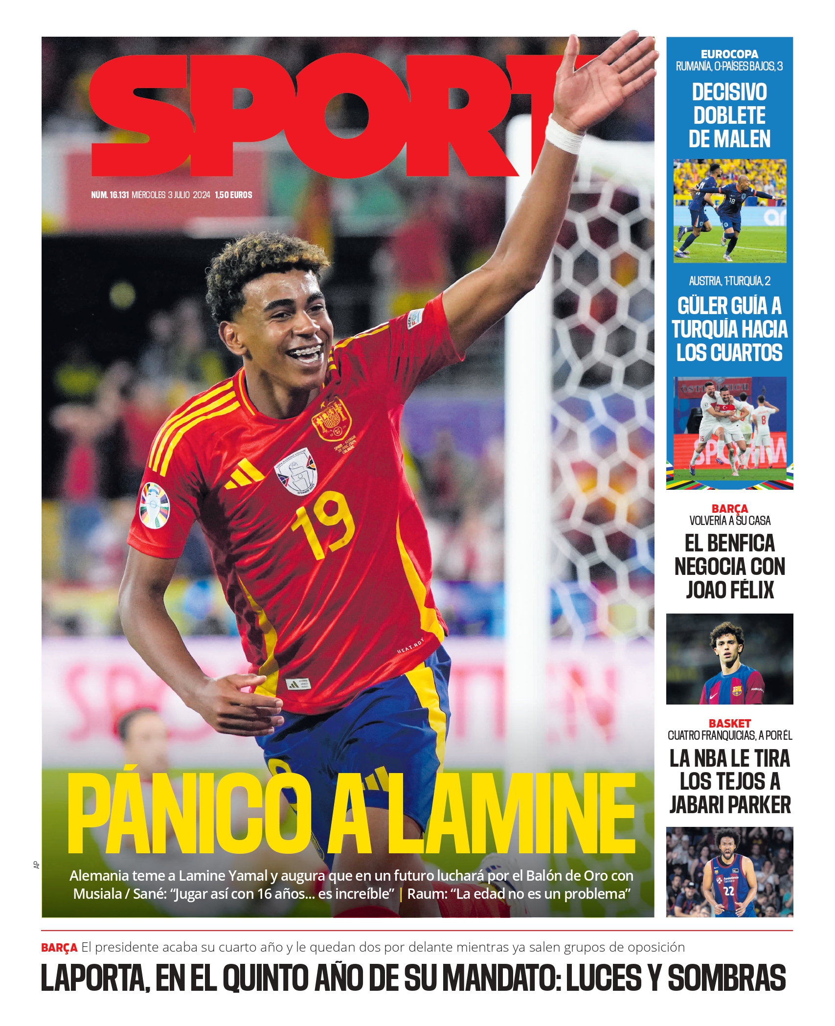 Sport arrima el ascua a su sardina insistiendo que el que sí es un jugador tremendo es Lamine Yamal. Coincidimos en que, por primera vez en mucho tiempo, propendiendo como propende esta gente a inflar el hype del producto Masía, Lamine tiene madera de extraordinario jugador, pero hombre, decir que en Alemania se le tiene "pánico" parece un tanto exagerado. Por lo demás, parece ser que Laporta cumple cinco años de mandato, con luces y sombras, siempre según Sport. Llevamos un buen rato pensando en las luces. Pasamos a enumerarlas a continuación: