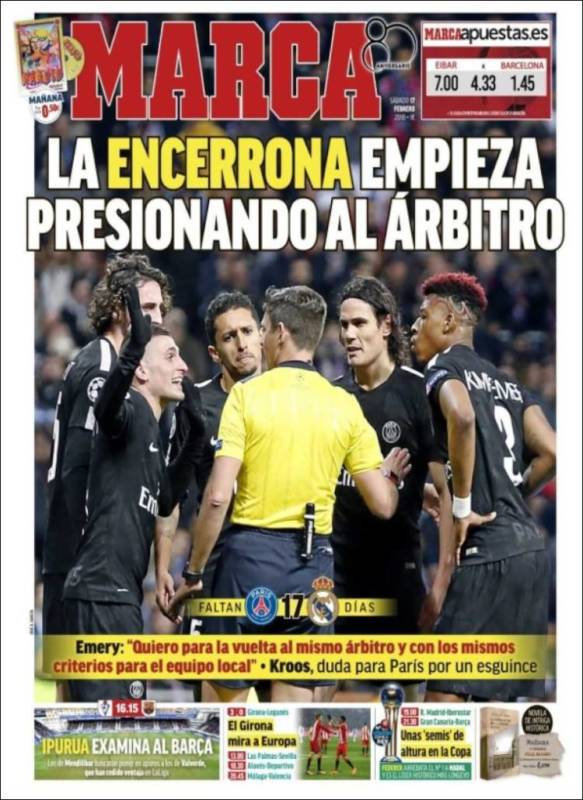 Hoy por ejemplo no. Hoy nos regala una portada en la cual, dando atinada voz al madridismo, hace notar a Emery y el PSG que nos damos cuenta de sus manejos, que sabemos que sus declaraciones en relación al arbitraje del partido de ida (y en relación a lo que esperan para el de vuelta) son una burda maniobra psicológica para incidir en dicho arbitraje. Intachable primera plana.