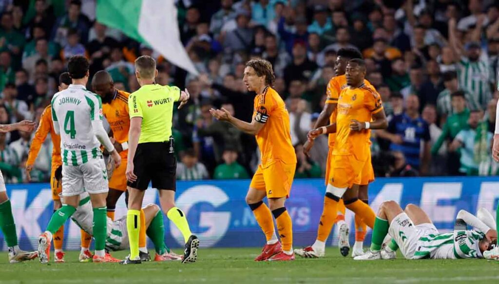 Al final desenfundó bastantes tarjetas, casi todas ellas justas. Tres para los locales: Isco y Chimy por faltas a Lucas y Altimira por una a Camavinga. Y cuatro para los madridistas: Brahim por agarrar a Jesús, Rüdiger en el penalti, Alaba por una dura entrada a Cuchu y Vinícius por protestar.