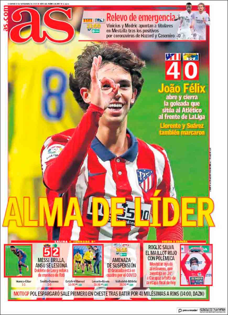 De nuevo Messi de espaldas. Vuelve el gol, pero no “vuelve el VAR”, como tituló el As de manera vergonzante (sí, Fredo Relaño) en la portada que hoy hemos querido recordar. Vuelve el gol, sí, y por primera vez en lo que va de temporada el gol de Messi (el segundo de anoche) no vino desde el punto de penalti. Como tampoco fue de penalti el gol de su compañero en portada, Griezmann, especialista en fallarlos con la camiseta del Barça, como anoche, con la de la selección francesa o en finales de Champions.