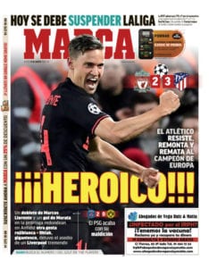 No es para siempre en este caso. El fútbol volverá. Es solo que no sabemos cuándo. Ved estas portadas de fútbol como la rareza que son hasta que vuelva la normalidad, y preguntaos con nosotros cómo es posible, cómo coño es posible que este partido se jugase ayer con las gradas a rebosar, cómo carajo es posible que miles de atléticos viajaran ayer a Liverpool. Cómo es posible. En fin. El Atleti ganó. Vedlo y contextualizadlo.