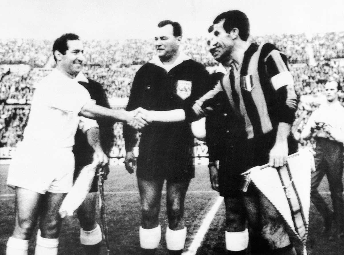 (En el camino, el 29.1.64, en ida de cuartos de final de la Copa de Europa 63-64 y en Chamartín había quedado una soberana exhibición de la todavía 'Saeta Rubia' ante AC Milan, vigente campeón de la Copa de Europa en 1963: 4-1 para el Real Madrid, con sendos golazos de Di Stéfano —uno, en tiro de castigo inolvidable, con el exterior del pie— y otro par entre Puskás y Gento, para 4-0. Desde ahí y en el minuto 83, Giovanni Lodetti (que murió en septiembre de 2023) produjo el 4-1 para los 'rossoneri' milanistas que entrenaba Luis Antonio Carniglia. El Real Madrid sufrió en la vuelta, en San Siro, que dominaron los de Carniglia por 2-0. Pero se clasificó el Real).