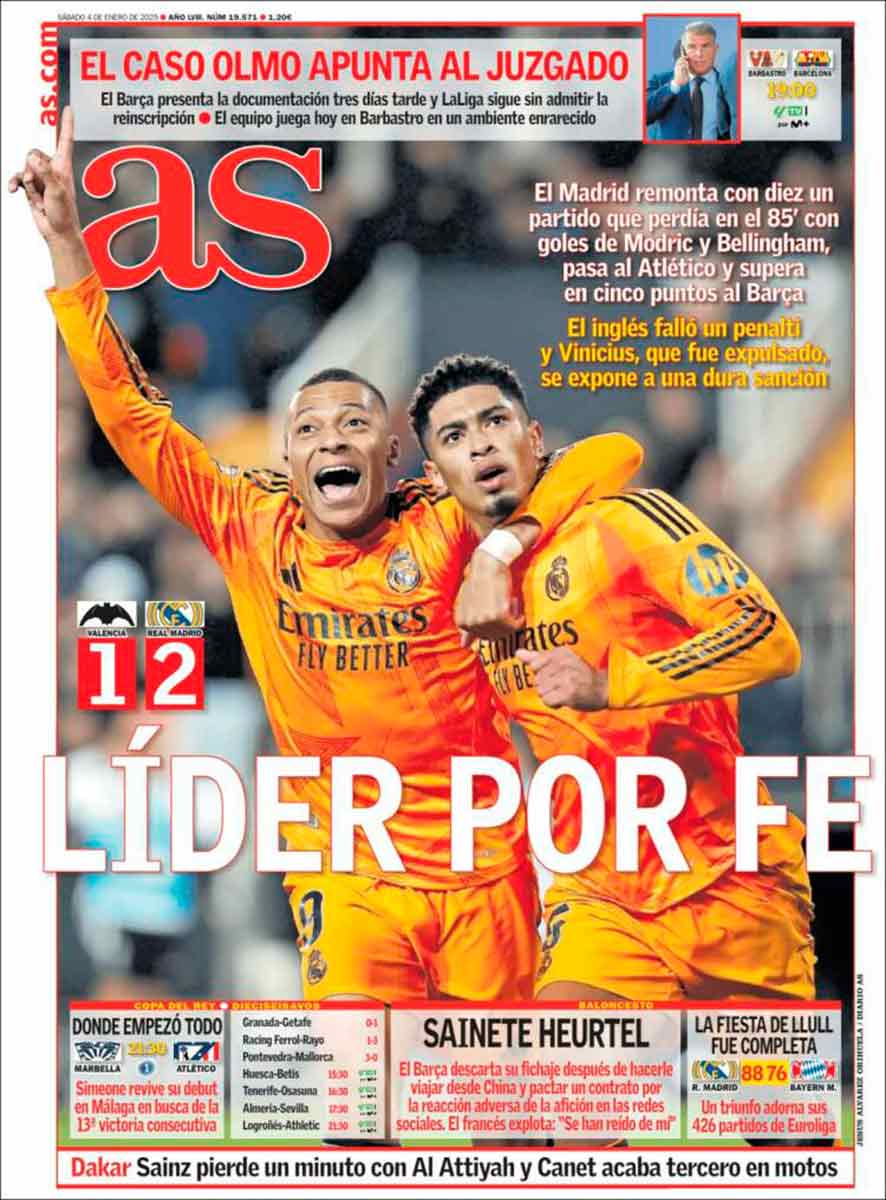 El diario de Godó dedica el principal espacio de su portada a Olmo y titula «Regla 1:1 para el Barça». Son dos asuntos diferentes, que el club cliente de Negreira pueda fichar acogiéndose a esa norma no significa que pueda volver a inscribir a Olmo y Pau Víctor, hecho que legalmente ya no es posible, aunque, como sabéis, se acabará produciendo.