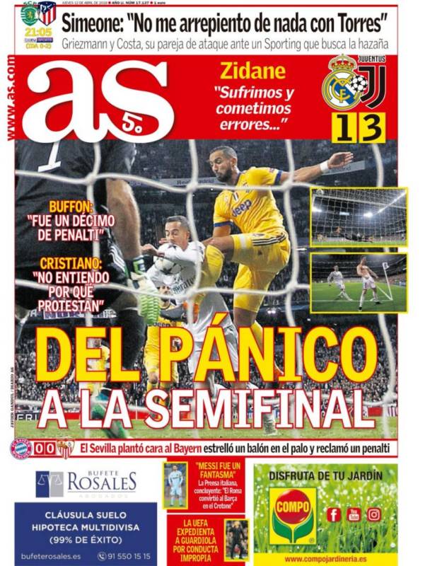 Ayer sí tocaba manchar un pase del Madrid porque no digieren que estemos en semifinales, porque tenían los petardos ya encendidos, los titulares y las crónicas hechas.....porque habían de tener ese sudor frío del miedo ante la perspectiva de que el Madrid pudiera levantar la 3ª champions consecutiva...y de repente los sueños se rompieron y la pesadilla les volvió a aterrorizar....