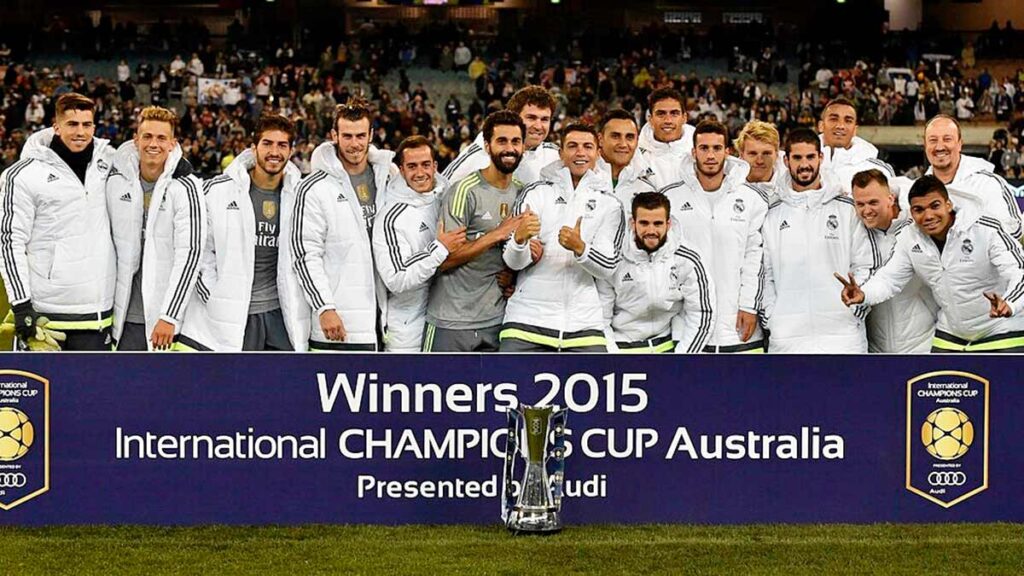 En lo deportivo, la expedición blanca aterrizó en Australia el 13 de julio, después de más de 25 horas de vuelo tras escala en Kuala Lumpur. Cinco días después disputaron el primer encuentro de su historia en Australia contra la Roma en el Melbourne Cricket Ground. El equipo blanco y el romano empataron a cero en el tiempo reglamentario y los giallorossi vencieron en penaltis por 7-6. Seis días más tarde, el Real Madrid volvió al mismo recinto para enfrentarse al Manchester City de Manuel Pellegrini. Los madridistas, bailando al son de Isco, vencieron por 4-1 con tantos de Benzema, Cristiano, Pepe y Cherysev, y se llevaron el trofeo de la ICC (International Champions Cup)