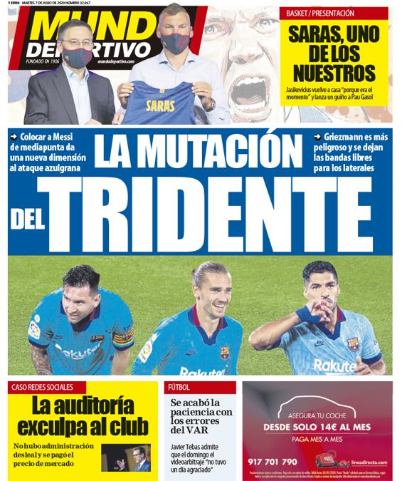 Mundo Deportivo destaca un deseo más que una noticia; dan vueltas acerca del posicionamiento en el campo del tridente y las mejoras que desean que ello conlleve. Aunque está claro que este tridente sin azúcar no es como el del anuncio y no lo recomiendan nueve de cada diez dentistas.