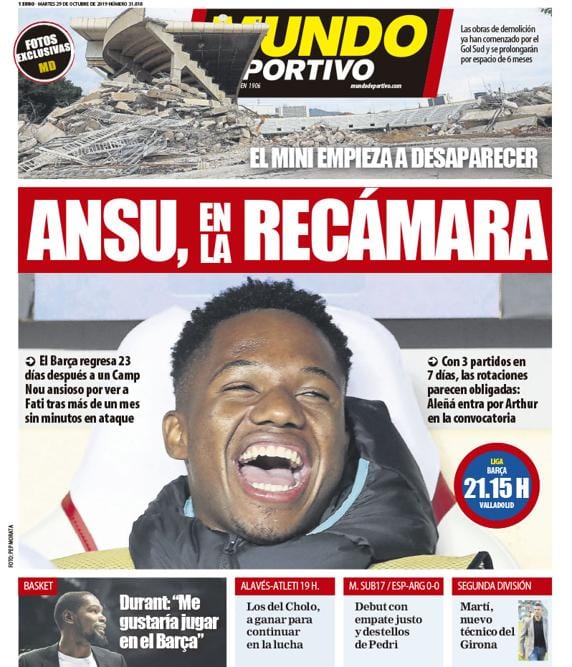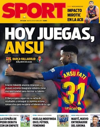 La prensa cataculé, por su parte, nos obsequia hoy con una nueva dosis de hype de Ansu Fati. A ver si otro día nos cuentan si sus amiguitos van a dejar que se juegue algún día el Clásico del Camp Nou.