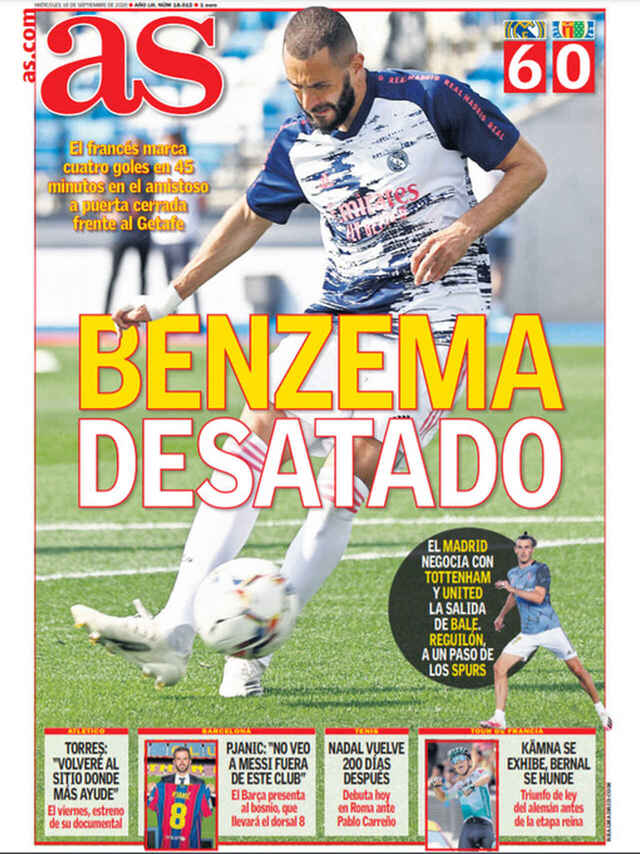 Al menos husmearlo lo suficiente como para dedicarle una portada con la media docena de goles blancos y el póker de Karim que sigue en estado de gracia. Es lo que tiene currar poco. Si a última hora del día Barnett ejerce de bocachancla, mete a Bale en un circulito y que no nos chafe la primera plana.
