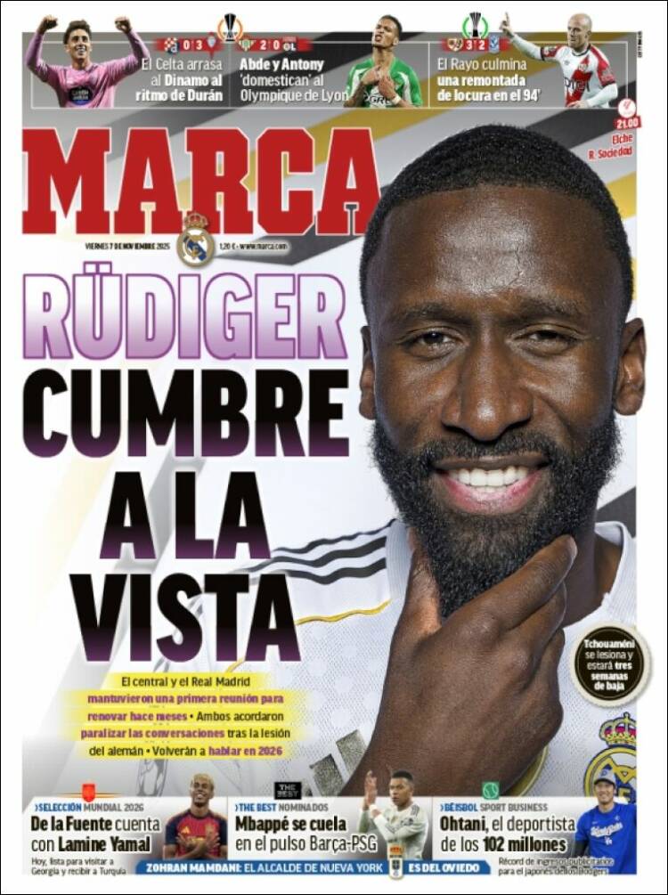 El diario Marca nos muestra a nuestro titán de ébano, don Antonio Rüdiger, en un primerísimo plano, y se nos informa de que ya hay conversaciones para prorrogar su vínculo con el Real Madrid, pues el actual concluye a finales de esta temporada. Ha habido casos sobrados de jugadores legendarios a los que se ha echado de más, sobrando en sus trayectorias, por lo menos un par de temporadas en nuestro club. La política actual del club es no ofrecer la extensión de los contratos por periodos superiores a una temporada a los jugadores cuya edad rebase la treintena. Sentido común en extracto. No por coincidir con ese criterio de prudencia en la administración de nuestro club dejamos de querer un ápice a Rüdiger, cuyo rendimiento, carácter, acierto en los lanzamientos de penalti y capacidad de elevar las rodillas hasta los lóbulos inferiores de las orejas otorgan un lugar preponderante en el santoral madridista más reciente.
