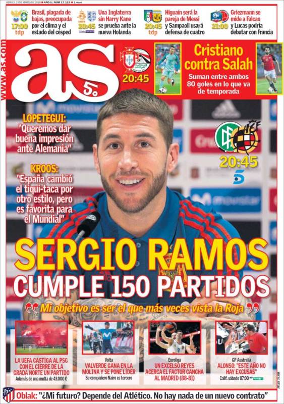 E Iniesta enfrentándose a Kroos y Ter Stegen en ambas portadas mientras un tal Arturo en el diario de Godó, Grande de España, asegura que su ídolo es el manchego de tez mortecina.