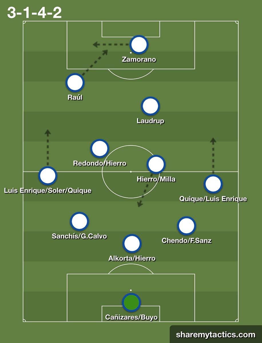 En lo puramente deportivo, la llegada de Arsenio suponía un regreso táctico a planteamientos que habían dejado de usarse en los primeros equipos del Madrid desde la llegada de Benito Floro en 1992. A diferencia de la marcación combinada con patrones mixtos y hombres libres usada por Antic, Arsenio y la mayoría de entrenadores de la Liga todavía a inicios de los noventa, tanto Floro como Valdano empleaban la marcación zonal, con una zaga en línea de cuatro hombres y la presión hacia delante como idea grupal, método que Sacchi había popularizado a finales de los ochenta con su arrollador AC Milan. Además, la influencia del campeón del mundo Menotti sobre Valdano hacía que el técnico argentino trabajase el conocido achique de espacios desde mitad de campo para propiciar la trampa del fuera de juego, una elaboración sin balón arriesgada e inusual en la época.