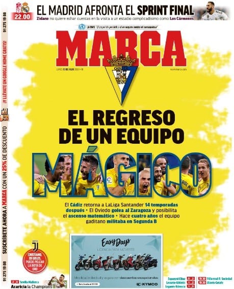 Buenos días. El Cádiz vuelve a ser equipo de Primera y, comoquiera que es un club que cae bien a todo el mundo y nosotros entramos dentro de ese vasto conjunto, en La Galerna lo celebramos sin reservas. Lo celebramos a pesar de haber sido en alguna ocasión blanco (nunca mejor dicho) de la rechifla de una afición única (“Cheryshev, te quiero”) a la que habrá que perdonar que una representación de la misma haya protagonizado aglomeraciones de júbilo difícilmente compatibles con la era de pandemia que aún -hay que subrayar lo de “aún”- vive el planeta en el que estamos. El Cádiz resulta simpático a la práctica totalidad de quienes conocen su existencia, incluyendo un Michael Robinson que formaba parte de su capital y que por pocos meses se ha perdido la Premier de su Liverpool y el ascenso de sus huestes gaditanas. La vida es a veces despiadada. Un recuerdo para Robin.