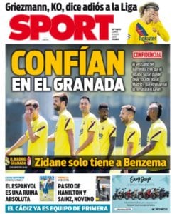 Bonita apoteosis de plegarias gratuitas la que despliega Sport, fiando al Granada y luego al Villarreal la tarea que el propio Barça no está siendo capaz de llevar a buen puerto merced a su juego paupérrimo, solo maquillado por llantos sin tino. En el colmo del wishful thinking, los de Folch se descuelgan con una cortinilla en negro que no por enigmática resulta menos risible. “Zidane solo tiene a Benzema”. Sí solo tiene a Benzema, podemos encontrarnos con la primera ocasión en que seamos capaces de vaticinar un once del divino calvo sin temor alguno a errar.