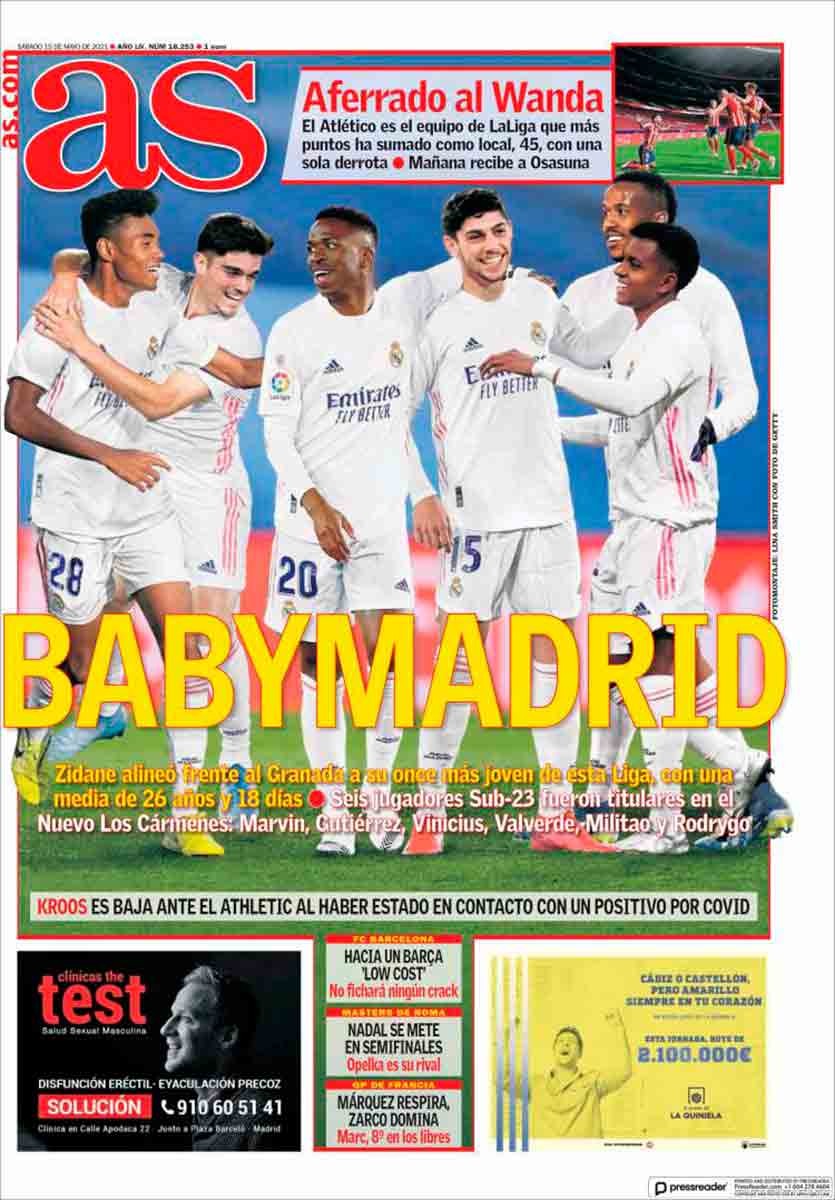 En Mundo Deportivo se han dejado por hoy de telescopios y ponen a sus chicas a toda página, en Goteborg, donde juegan la final de la Champions. Por fin un poco de cordura. Otra cosa es lo de As y todos esos jugadores del Atleti a los que imaginamos, cómo no, AFERRADOS AL WANDA igual que a una cornisa, como si estuvieran escalándolo, o como si fueran amantes en casa ajena tratando de escabullirse no de un marido enfadado sino de un Madrid lanzado.