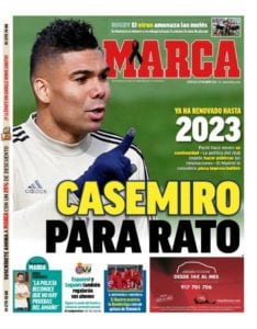 Estamos tan cabreados que nos dan ganas de soltar a Casemiro en la redacción de As en busca de espinillas varias, pero tampoco merece la pena y además es una broma. Lo que no es ninguna chanza es la feliz noticia que nos brinda hoy Marca. Casemito renovado hasta 2023 garantiza futbol contundente y madridismo de altura en nuestra medular para el próximo trienio. Nos felicitamos enormemente amigos galernautas, aunque no acabamos de entender la apostilla del club de no hacer públicas las renovaciones cuando recientemente Carroll y Felipe lo han hecho y no hace tanto Kroos dio el pistoletazo de salida de esta pretemporada con una renovación. Tanto da que da lo mismo. Los verdaderos madridistas siempre renuevan y nosotros con ellos nuestros blancos corazones. Qué cursi se ha vuelto uno en el confinamiento.