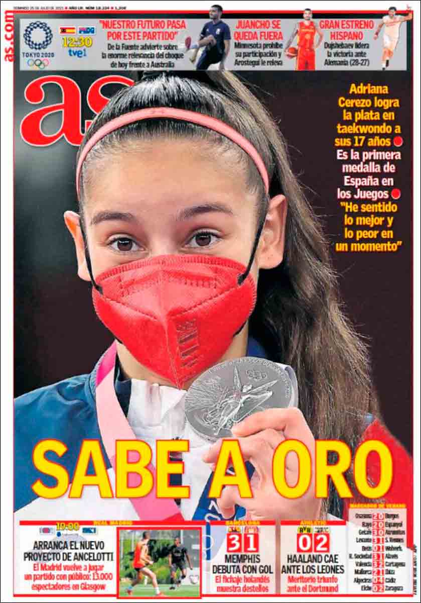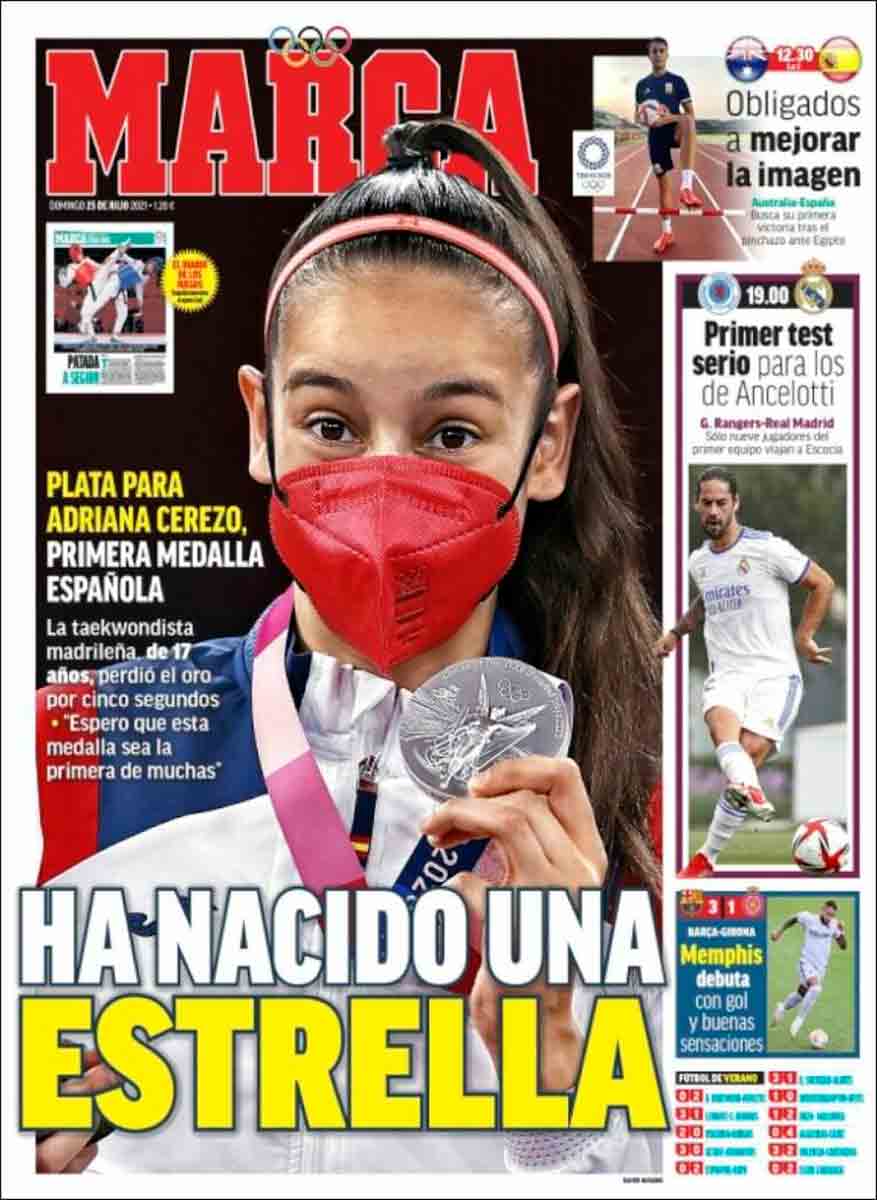 Buenos días. Hay unanimidad en las portadas del domingo tras la primera medalla española en los Juegos, plata, conquistada por la taekwondista de diecisiete años Adriana Cerezo. Una unanimidad que en los diarios cataculés se ve minimizada por las cosas de casa, por supuesto. Donde estén unas buenas pachangas llenas de futbolistas fuera de forma con sus barriguitas veraniegas que se quiten los Juegos Olímpicos, tú. Cosas de casa (Family Matters) era el título de la serie de humor protagonizada por Steve Urkel, a quien en Barcelona han debido de confundir con el pobre Memphis.