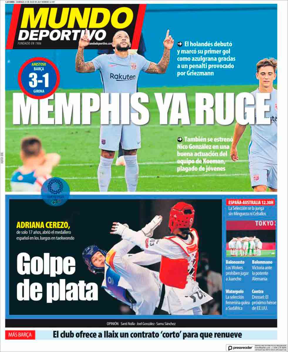 En Mundo Deportivo por lo menos le llaman Memphis, pero en Sport encima le llaman Depay. Mira que el hombre ha dicho que prefiere que le llamen Memphis porque no quiere que le relacionen con su padre. Pues nada, en Sport van y le llaman Depay, y eso que les ilusiona. Si no les llega a ilusionar lo mismo le llaman Urkel, directamente. Y de la inscripción, ni mu. Dicen, en Mundo Deportivo, que “ya ruge”, pero es como si lo hiciera enjaulado, o en el limbo azulgrana.