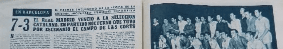 Hubo bastantes agasajos antes del partido, visitas a las obras de los estadios catalanes, comida de hermandad, vinos en la Asociación de Prensa (sic). Y por supuesto, hubo fútbol. Primero un partido de juveniles y luego la Selección Catalana contra el Real Madrid. Lo de llamar al combinado barcelonés Selección Catalana aparece literalmente en el Boletín Oficial del Real Madrid de Octubre de 1956. Allí también se puede leer que "la afición catalana ovacionó a los campeones de Europa al empezar y terminar el partido. Y subrayó con aplausos varias brillantes jugadas madridistas". Lo mismo refleja el periódico barcelonés Mundo Deportivo, que el público de aquella noche en Las Corts estuvo rendido al juego madridista y que parecía querer sólo "saborear el buen juego".