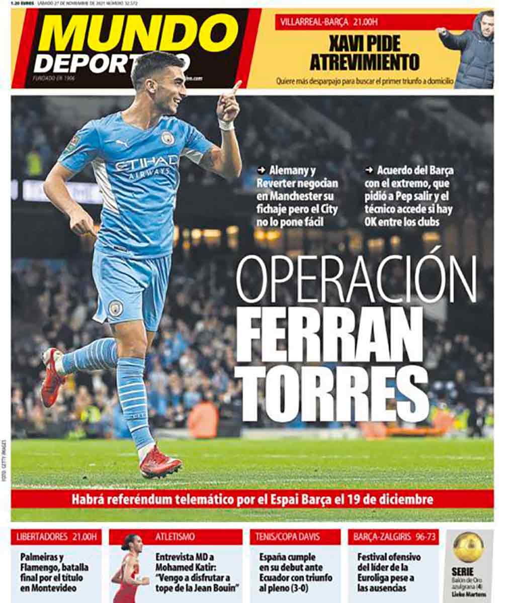 Tanto Mundo Deportivo como Sport dedican sus primeras planas al fichaje deseado del día, que hoy es Ferrán Torres (aplausos enlatados de concurso). Si anotásemos todos los futuros fichajes que ambos periódicos atribuyen al Barça, la lista sería más larga que la de los reyes godos. Pero son sus costumbres, el culé vive feliz en el autoengaño, porque ¿qué es la pantomima de los valors y el ADN Barça sino castillos en el aire?