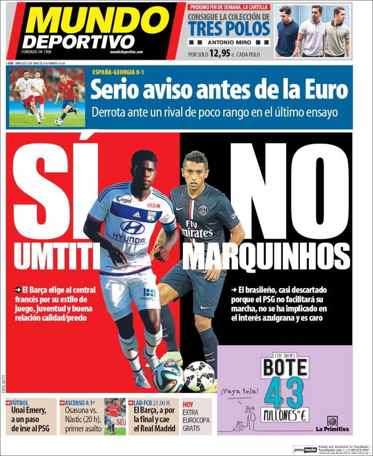 En días como hoy llega incluso a agradecerse la irrupción –sin bien calamitosa- de La Roja en las portadas de la meseta, toda vez que Mundo Deportivo vuelve por quincuagésima vez a llevar el no-fichaje de Marquinhos a su primera plana. Marquinhos: el futbolista que sin haber vestido la elástica azulgrana más veces ha sido portada en la prensa catalana.