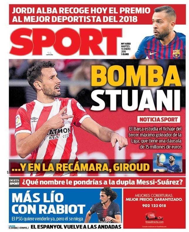 Pardiez. Nos informa Sport de que Jordi Alba recogerá hoy el "premio al mejor deportista de 2018". Necesitaríamos más información. ¿El mejor deportista de dónde? ¿Quién da el premio? ¿Se trata de un premio de la Fundación Getty al mejor deportista del planeta en 2018? Casi pero no. Es un premio al mejor deportista catalán que entrega... el propio diario Sport. Cuando La Galerna entregue a Mario de las Heras un premio al mejor hipocondríaco, recordad recordarnos olvidar mencionar que el premio lo da la propia La Galerna y que sólo eran elegibles los componentes de nuestro consejo de redacción. El incomparable Jordi, por lo demás, aparece en la foto con su habitual expresión de astucia y en el ademán de meter un centro al área o de estar a punto de lesionarse fingiendo haber sido lesionado.