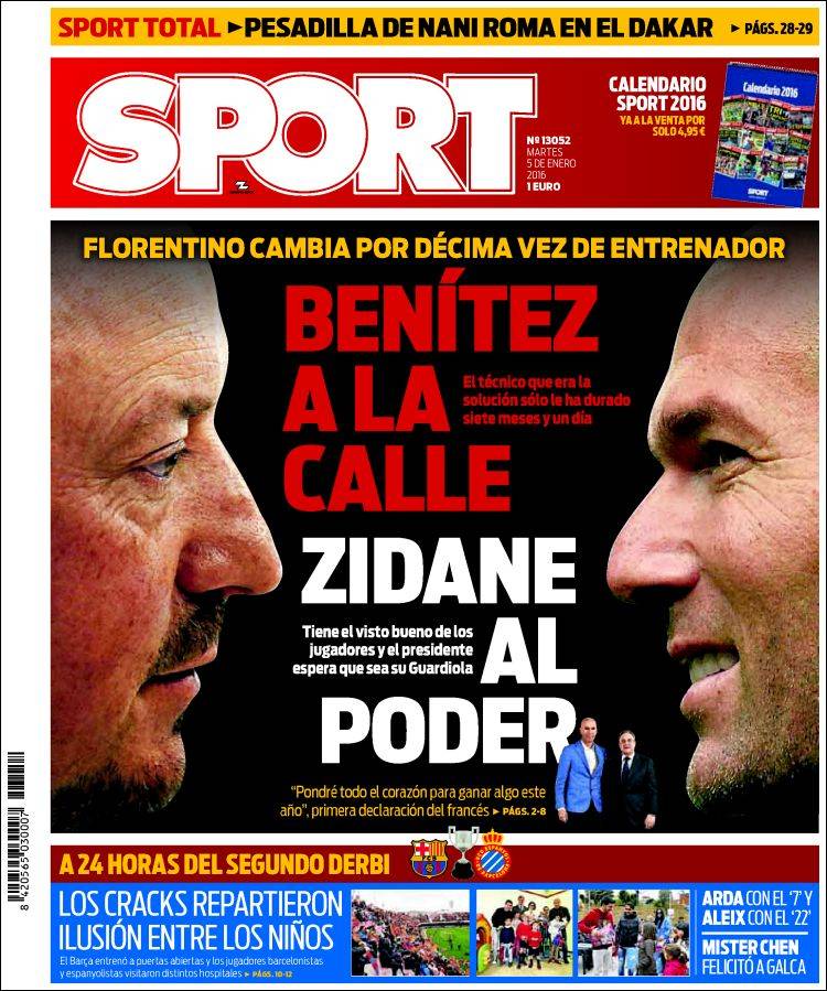 Sport tiene el detalle de ser el único de los cuatro medios deportivos del día que nos enseña, también, la foto de Benítez, un hombre trabajador y honesto a quien cabe agradecer los servicios prestados con algo más que el laconismo buenista habitual en estas situaciones. Ha sido cesado tras el que nos pareció uno de sus mejores partidos al frente del equipo, aunque no decimos que esto debiera por fuerza haber bastado para mantenerlo en el puesto. Eso tampoco lo sabemos. Solo decimos que nos da eso: pena. Y mucha.