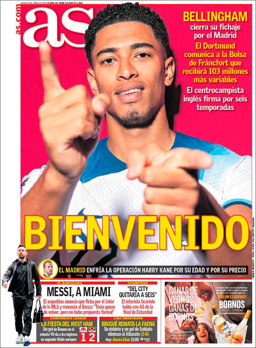 No sabemos si Bellingham es un hijo del rock and roll, pero As lo recibe con un Bienvenido. Magnífico, la educación es lo primero.