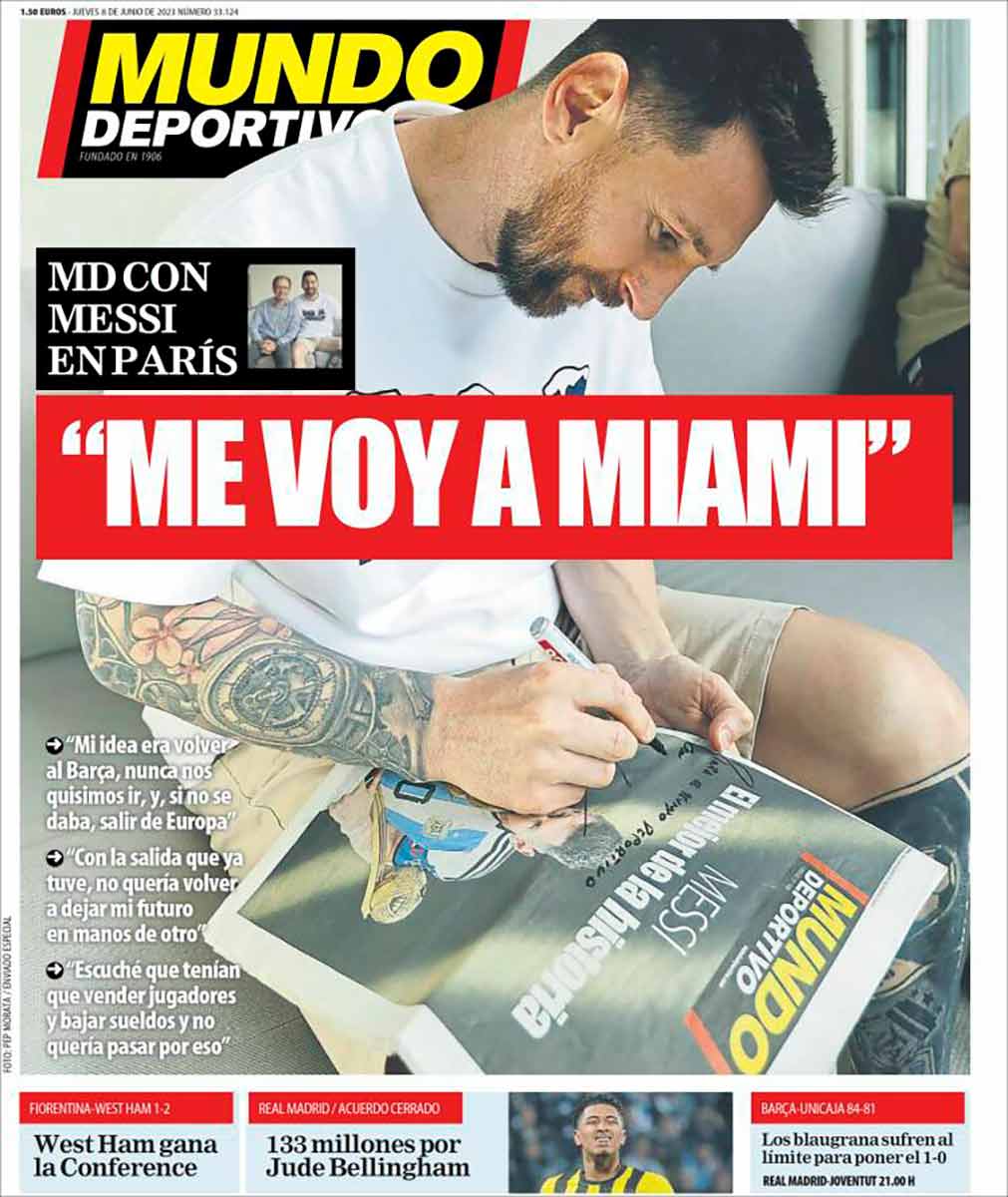 Los diarios culés van a rebufo, como no podía ser de otro modo, de su alipórico club, que para eso es el que manda, y publican el mismo periódico, pero con distinta cabecera, sobre Messi, ese futbolista que no es del Barça y se va a otro club que tampoco es el Barcelona.