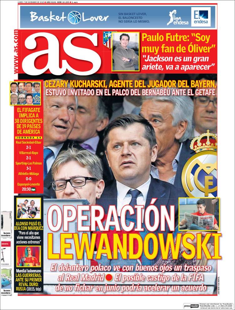 Se os ha pasado por alto comentar la jugosísima última línea de la portada de As: "El posible castigo de la FIFA de no fichar en junio podría acelerar el acuerdo". En una nueva pirueta de virtuosismo amarillista, Relaño cuela en la portada una noticia que ya lleva cerca de un año quitándonos el sueño (no olvidemos que a Odegaard lo fichamos a correprisas por pánico a la inminente sanción FIFA), y de paso nos abre otras perturbadoras incertidumbres. Si la FIFA nos sanciona en junio, hay que recordar que lo que nos prohibirá no será negociar fichajes, sino inscribir nuevos jugadores. Por tanto el Madrid tendría que darse toda la prisa del mundo para negociar por Lewandowsky en diciembre e inscribirlo en enero, eso sí, con el inconveniente de que ya no podría jugar Copa de Europa este año. Aunque, tachán, cabría otra opción, que al Madrid lo sancionasen y se le concediera como al Barsa una moratoria en la sanción, en cuyo caso... ¿A qué vendrían las prisas de negociar ahora?