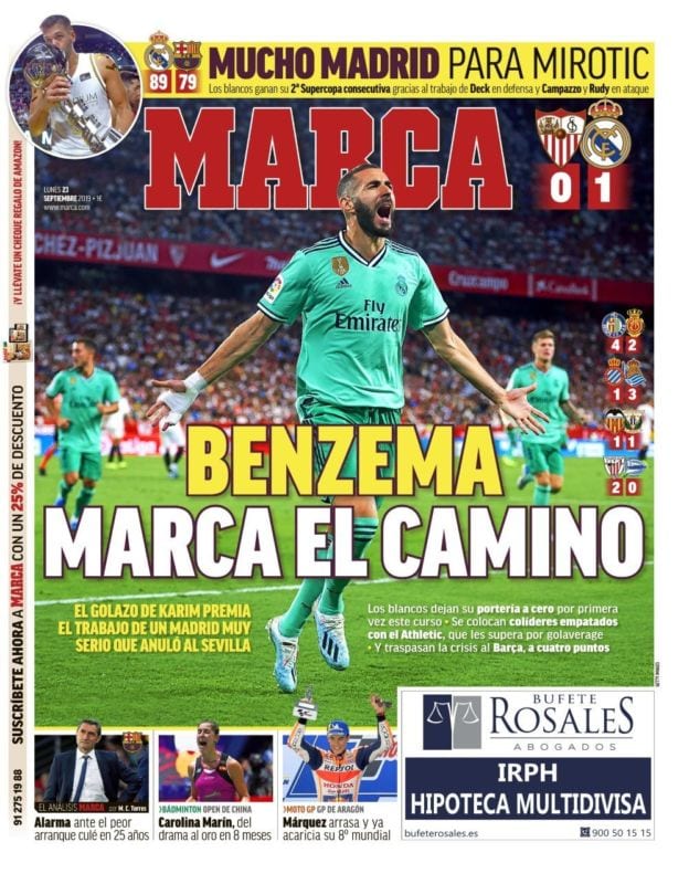 3. Parece que la demagoga prensa deportiva editada en papel de Madrid ya le ha quitado a ZZ el aviso de guillotina que le habían puesto en su portada del jueves tras el esperpento de París cuando ni tan siquiera habíamos s perdido un partido, simplemente, dos tropiezos en forma de empate que, aunque nos penaliza con un punto menos, vinieron tras sendos partidos en los k el Madrid mereció la victoria y, en el caso de la salida a Villarreal, el VARsa nos oenalizó con no querer revisar el evidente penalty cometido a Vinicius en las postrimerías del partido