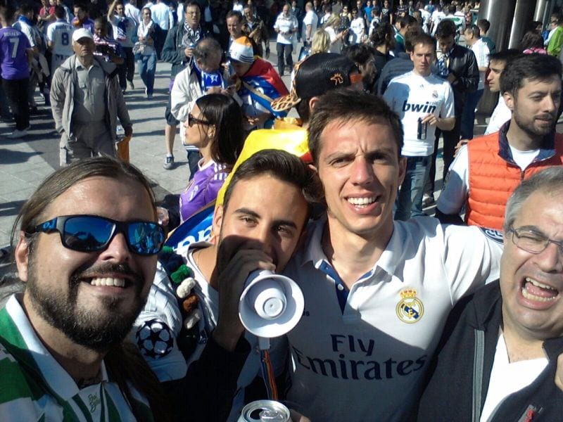 No hace falta que Charly me cuente cómo fue el recibimiento por parte de la parroquia madridista porque yo lo viví junto a él, entre fervores hooliganeros y, por qué no decirlo, efluvios etílicos. Gente acercándose en las horas previas para cantarle lo del musho Beti haciéndole reverencias; otro espontáneo -con su camiseta de Mijatovic- hablándole de Lopera en medio de los abrazos más tiernos; unos y otros haciéndose selfies con la atracción más excéntrica de la antesala a la gran cita. "No esperaba ningún recibimiento hostil porque creo que existe una relación muy cordial entre ambas aficiones y que viene de lejos", recuerda. "Pero la calidez de la gente superó todas mis expectativas. Me sentí muy bien acogido por todo el mundo. Me di cuenta de que el Betis es querido y respetado en el madridismo".