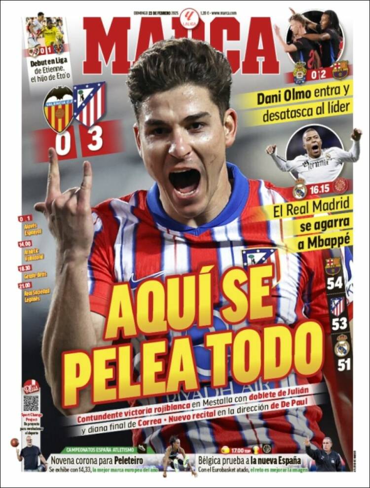 Hablamos de lo azulgrana o de lo rojiblanco porque ambos equipos, el cliente de Negreira y el cliente de Munuera, fueron grotescamente beneficiados ayer. Los culés, del modo en que acabamos de explicar; los rojiblancos, a través del no señalamiento de una mano como la copa de un pino en área atlética. El Valencia, rival colchonero, se saltó durante un momento el respeto a las decisiones arbitrales que hipócritamente se había autoimpuesto para poder arremeter contra el Madrid firmando un comunicado conjunto con LaLiga. Observen qué sepulcros blanqueados.