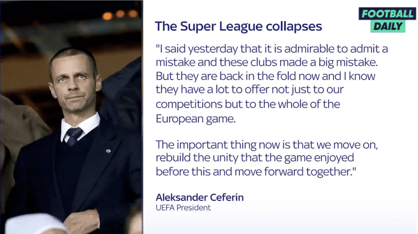 Siempre he dicho que la corrupción mediática deportiva era solo un reflejo de la que existe a nivel general. Los que manejan el mundo llevan muchas décadas utilizándonos como ganado a todos los niveles. Parecía que el fútbol no era lo suficientemente importante como para que bajasen a la tierra a "poner orden" en este asunto de la Superliga, pero por lo visto sí lo era. Y no es de extrañar. 4000 millones de potenciales hinchas del fútbol saliéndose de sus dominios y de su influencia directa era un peligro para ellos que no podían tolerar. Ceferin solo es un títere a las órdenes de intereses mundiales mucho más poderosos. El deporte rey del mundo tiene que seguir siendo un instrumento de control social en manos de las élites corruptas que gobiernan ese mundo.