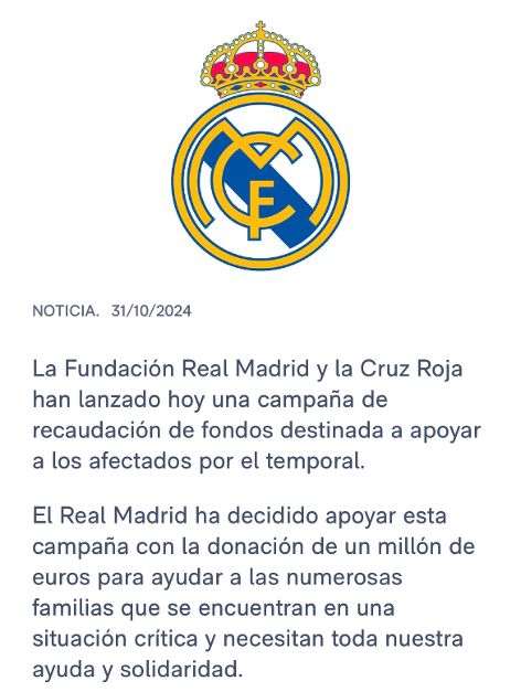 En el propio comunicado del Madrid consta la web a través de la cual también puede donarse.