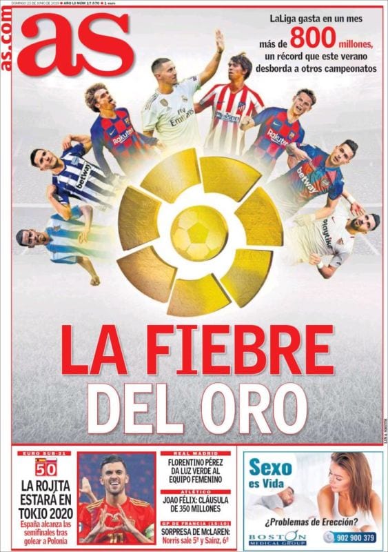 Para empezar se nos queda a medias la portada de nuestros amics de As por meter a todos en el mismo saco y perder así la ocasión de dejar claro dónde está el bien y dónde el mal, dónde la fuerza y dónde el lado oscuro, dónde los gastos prudentes y necesarios en fichajes y dónde el obsceno derroche llevado a cabo por el Real Madrid, dónde el atractivo engalanamiento de la liga patria y dónde el camino del exceso, la borrachera y la resaca de Florentino Pérez. Por ejemplo, no nos vayan ustedes a comparar la modélica operación Griezmann, pura transparencia y rigor, con el fichaje de Hazard, un gasto absurdo y desaforado por un jugador tendente a engordar y a cumplir más años de los muchos que ya tiene. No nos vayan ustedes a comparar la generosa oportunidad que brinda el equipo del pueblo a un joven soñador llamado Joao Félix con la desorbitada adquisición de un tal Rodrygo, a quien no se le permite seguir formándose en su Brasil natal porque el dinero puede más que el corazón y la sana razón.