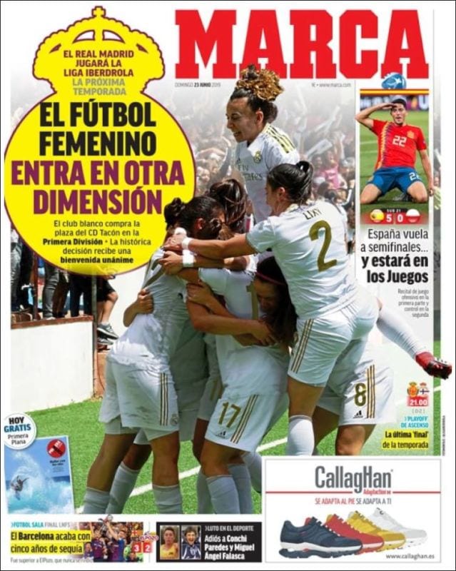 Pues me jode escribirlo, pero me gusta la portada del MARÇA. Vamos que después del coñazo que nos han dado a todos, este último año especialmente, pues parece que tenemos división femenina de futbol.