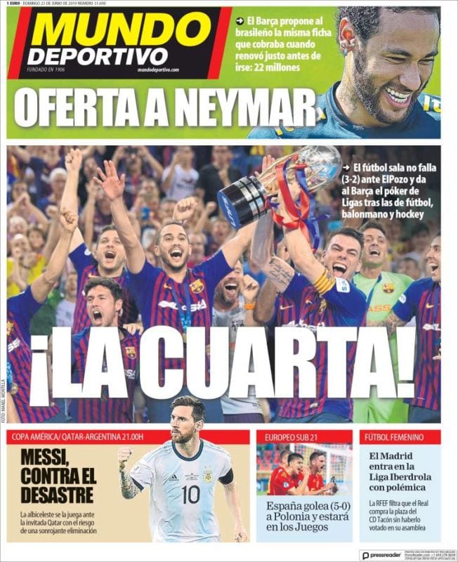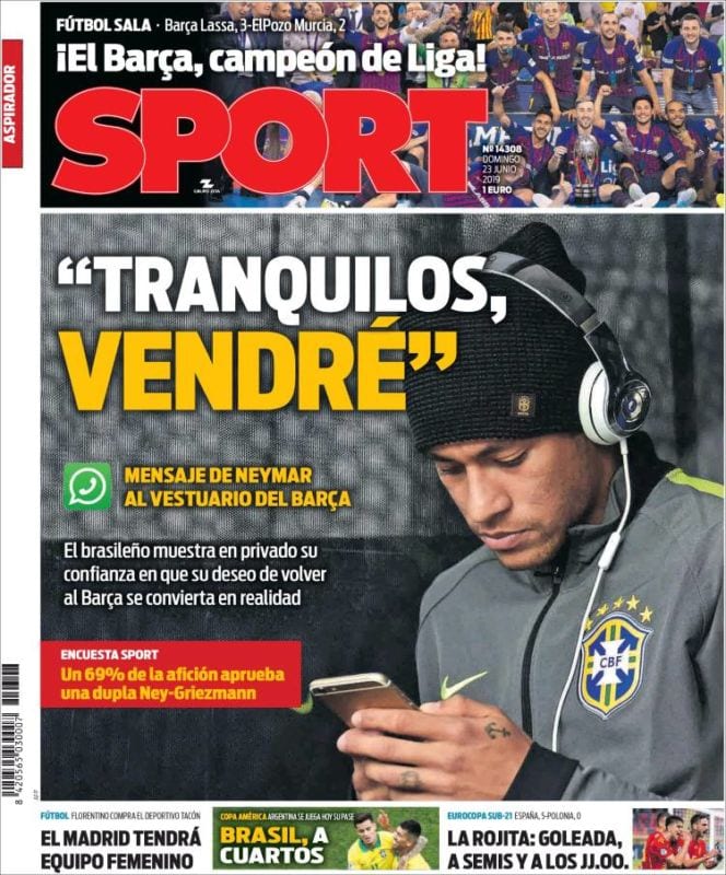 Como necesario y alegórico epílogo, no nos vayan ustedes a comparar al Neymar que se fue con el Neymar que puede volver, al hijo del padre de Neymar que sólo buscaba dinero fácil en París con el Ney que podría regresar a esta su casa porque así lo quiere D10s, el mago de Oz, Gandalf, Yoda o la Bernarda. El bien es el bien y el mal es el mal. Eso lo sabe todo el mundo y sólo pedimos a nuestros hacedores de portadas que no lo olviden y que continúen su labor humanizadora en este brave new world.
