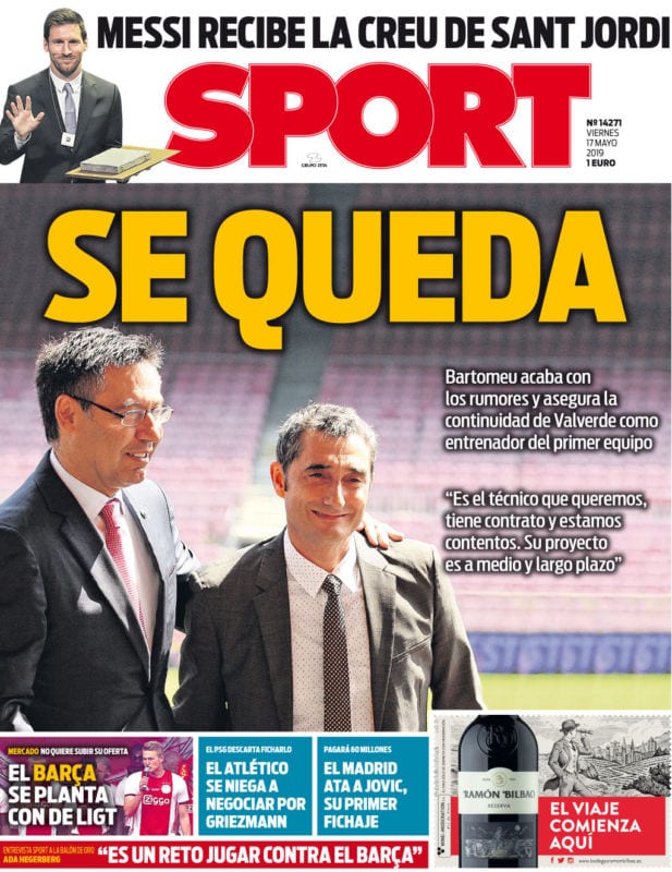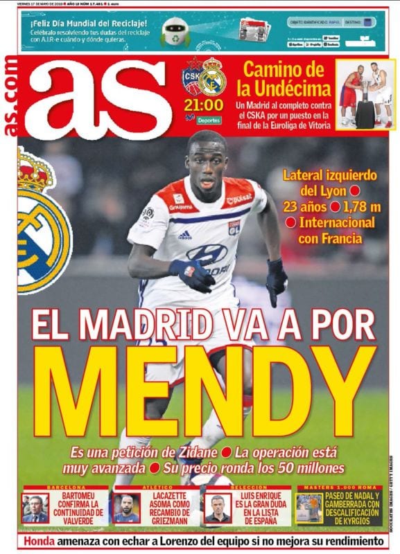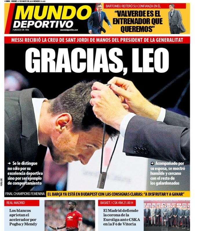 Por la demás, hoy es el primero de los (esperemos) dos grandes días que el fin de semana puede tener preparado para nuestra sección de baloncesto. Decepcionante el espacio que le dedican los dos grandes periódicos deportivos de la capital, más interesados en la acostumbrada ración de rumorología (Mendy en As) y la búsqueda del aplauso fácil (fútbol femenino en Marca) que de la inenarrable gloria potencial al alcance de los canastos vikingos. Hoy puede sellarse el paso a la Final que a su vez desemboque en la vigésimocuarta Copa de Europa (Trece en fútbol, Once -serían- en baloncesto) para la entidad deportiva más gloriosa del planeta. Mundo Deportivo nos dice por su parte que Valverde "se queda". Es un gracioso (?) guiño al famoso episodio de Piqué y Neymar. A ver si (tras las de Roma y Liverpool) vamos a ser víctimas de otra remontada impensable y el desenlace final se va a parecer al del brasileño con el PSG.
