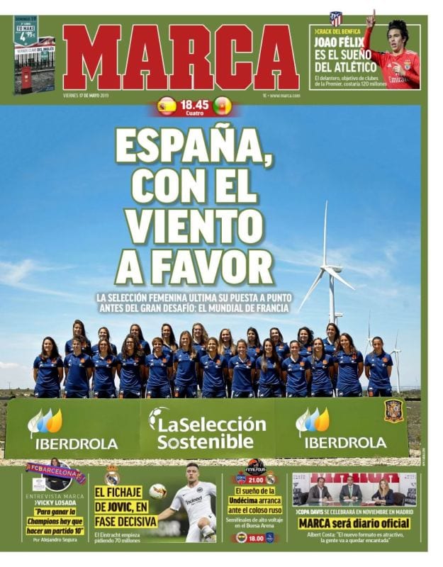 Sin ánimo de ningunear a las chicas de la selección, si cierta empresa eléctrica no las patrocinará... La portada de Marca parece una publi portada