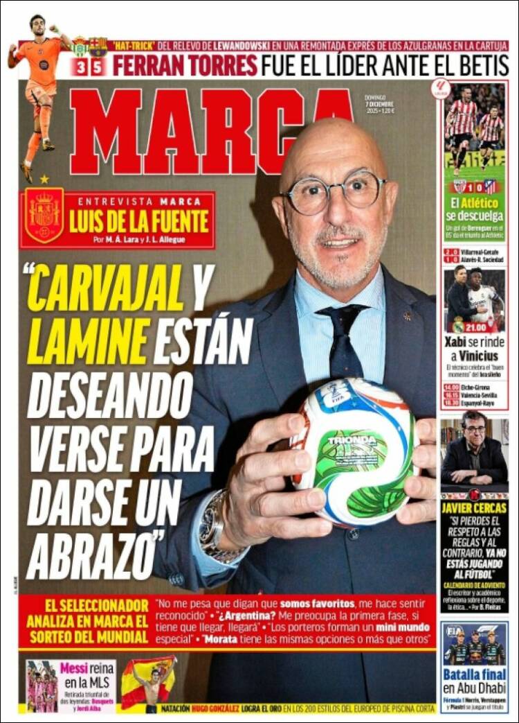 Marca trae a su primera plana a Luis de la Fuente, quien nos ofrece una exclusiva apelotante. Carvajal y Lamine Yamal están deseando verse para darse un abrazo. Y nos preguntamos: ¿quién se lo impide?