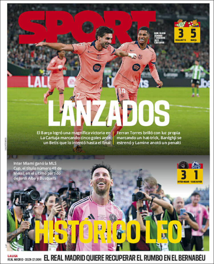 Sport, por su parte, celebra no solo el triunfo del llamado Tiburón en Sevilla, sino también el de Messi en USA, donde por lo visto acaba de adjudicarse otra de esas competiciones que los poderes fácticos diseñan a su medida para que así suceda. Enhorabuena a Messi que, de haber existido, sería quizá el mejor futbolista de la historia.
