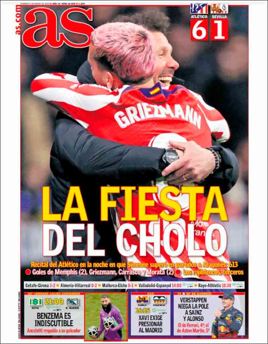 Bien es cierto que el hecho de que el Atleti meta media docena de goles siempre es noticia. La última vez, el Cholo no tenía pelo. Y lo sigue siendo, aunque sean seis al Sevilla de la prima de Monchi, al que parte del madridismo desea lo mejor, nobleza obliga, para un confortable descenso a segunda división, entre pitos a Sergio Ramos.